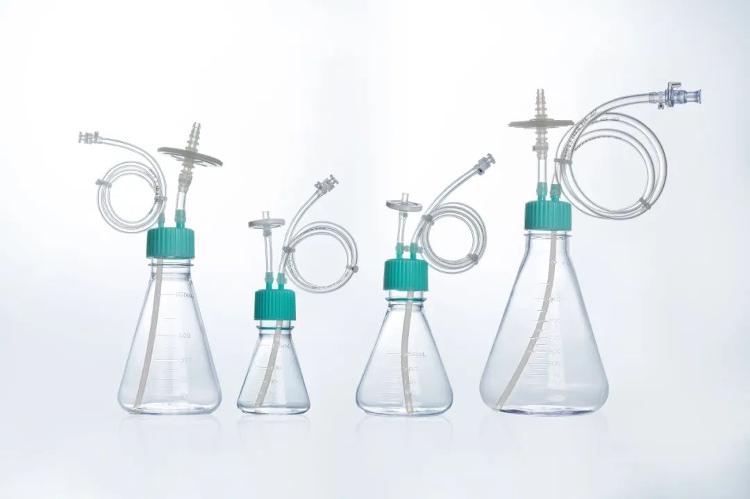 在生物制品的工业生产中,,,,,,,降低液体转移、取样等历程潜在的污染危害至关主要,,,,,,,三角作育摇瓶搭配无菌转移盖及管路系统,,,,,,,即可阻止开放式操作带来的污染问题。。。。。。