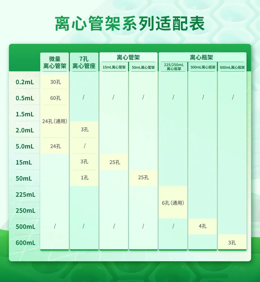◆ 15/50mL两种规格,,,,,,均配备25孔位,,,,,,荧光绿/深绿/蓝/白四种颜色可选