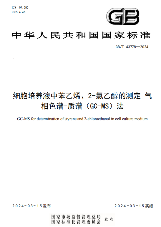 2024年3月15日,,,,,,,由lzyq88官网作为主要加入单位制订的国家标准《细胞作育历程中苯乙烯单体、2-氯乙醇残留量测定GC-MS法》正式获批宣布,,,,,,,标记着我国在细胞治疗产品质量控制领域取得了重大突破。。。。。。。。点击审查详情