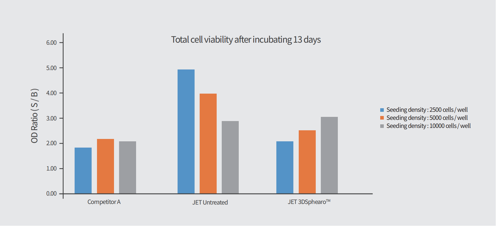 ͼ3£ºÏ¸°û×÷ÓýÖÁµÚ13 Ììºó£¬£¬£¬£¬£¬Íù²î±ð½ÓÖÖÃܶȵĸ÷ÑùÆ·¿×ÖмÓÈë 20μL /¿×µÄ CCK-8 ÈÜÒº£¬£¬£¬£¬£¬ÊÒαܹ⾲ÖÃÏÔÉ« 2h£¬£¬£¬£¬£¬È»ºó½«ÏÔÉ«ºóµÄÑùÆ·°´ 120μ L/¿×µÄÌå»ý×ªÒÆµ½Æ½µ×µÄ 96 ¿×°åÖÐ,²¢Á¢ÂíÖÃÓÚø±êÒÇÖоÙÐÐÎü¹âÖµµÄ¶ÁÈ¡£¡£¡£¡£¡£¬£¬£¬£¬£¬ÅÌËãϸ°û×Ü»îÁ¦¡£¡£¡£¡£¡£
